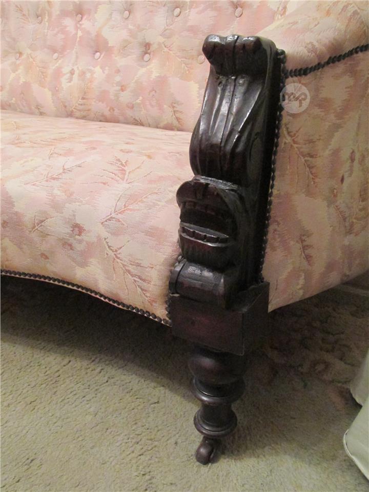 Lovely Antique Maltese SOFA with modern button upholstery, legs on brass wheels. Would look great in any home or boutique hotel..