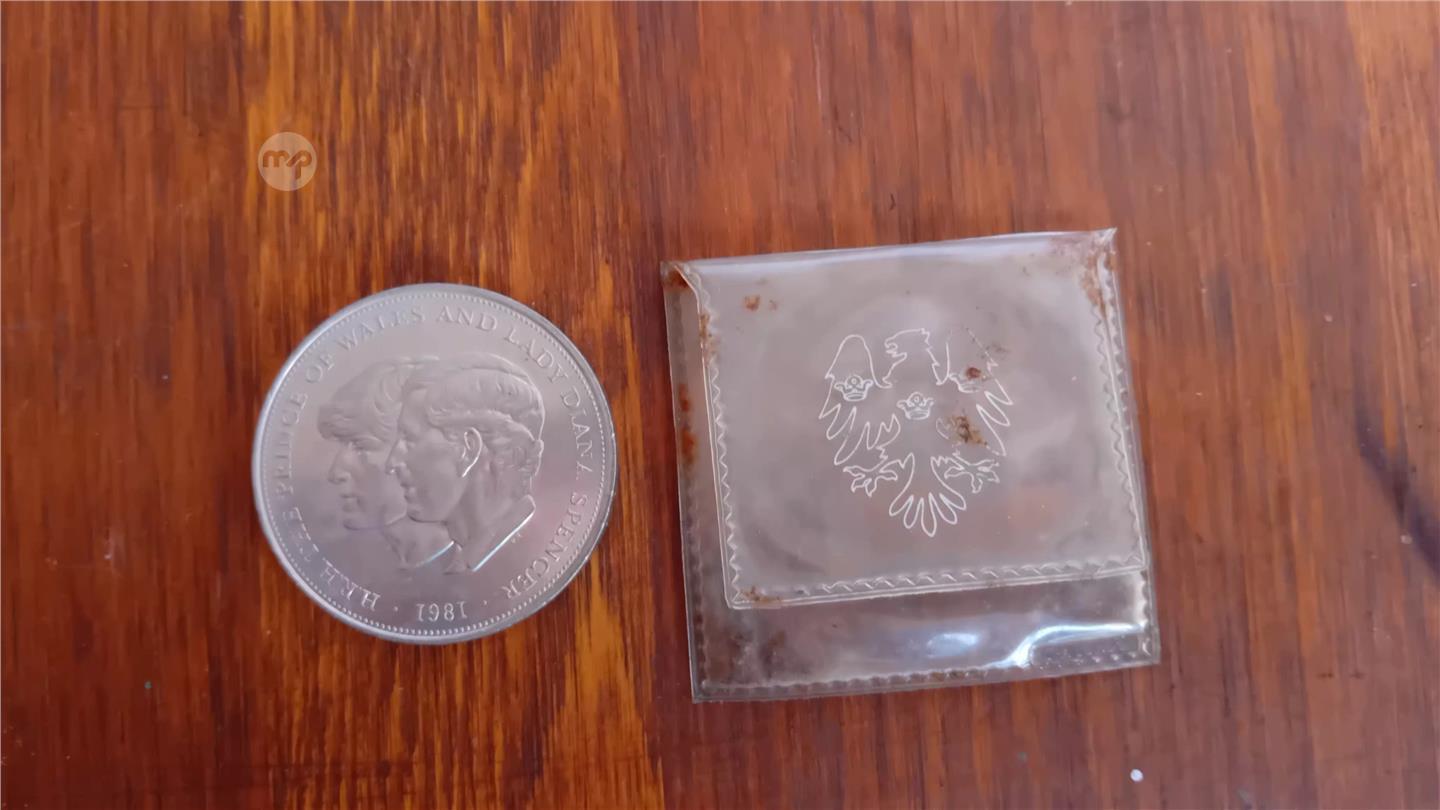1981 PRINCE CHARLES & LADY DIANA COMMEMORATIVE COIN WITH ORIGINAL PLASTIC ENVELOPE (WHICH SHOWS SOME AGE)