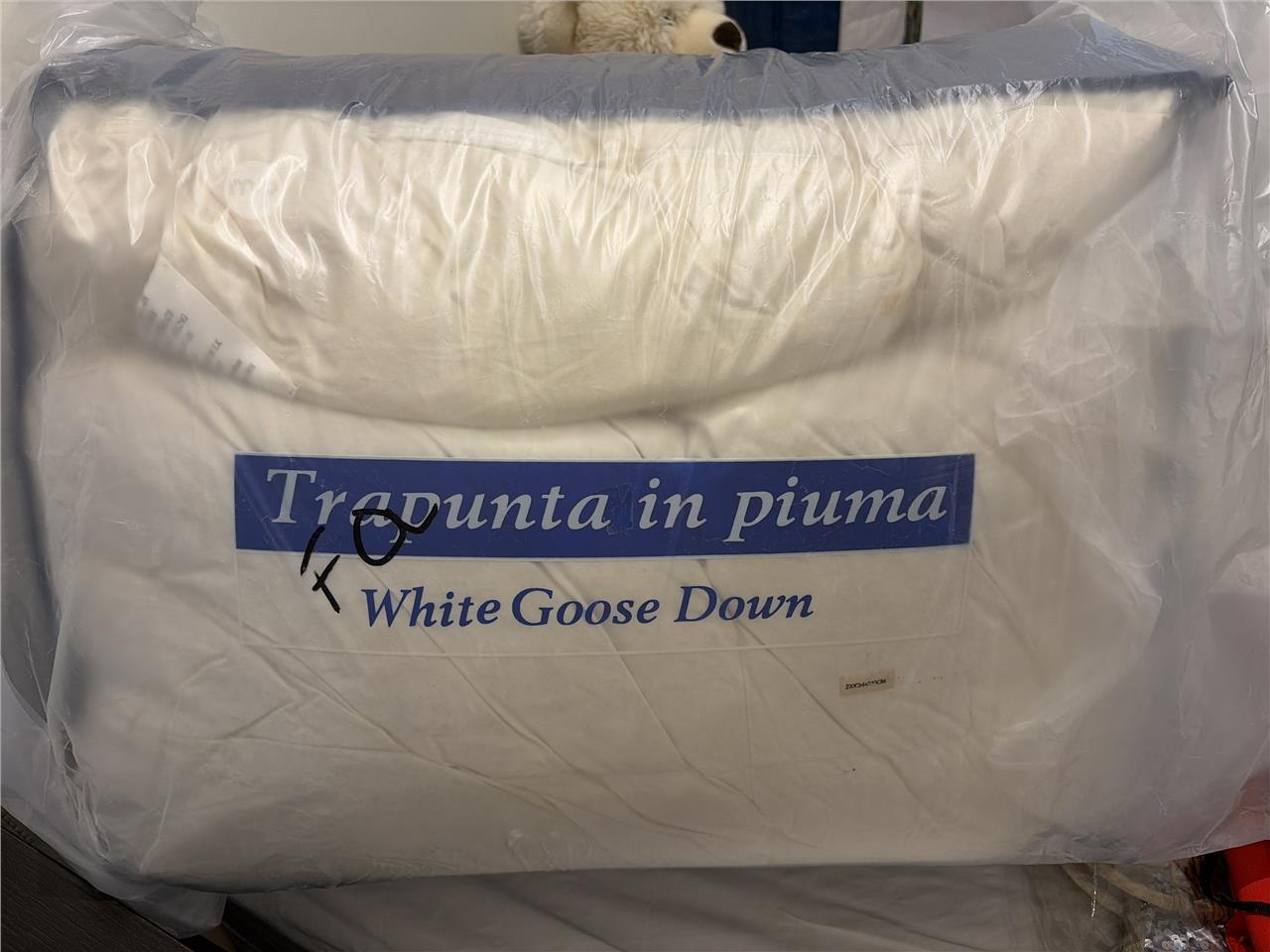 220 x 230cm white goose down quilt (Brand trapunta in piuma)