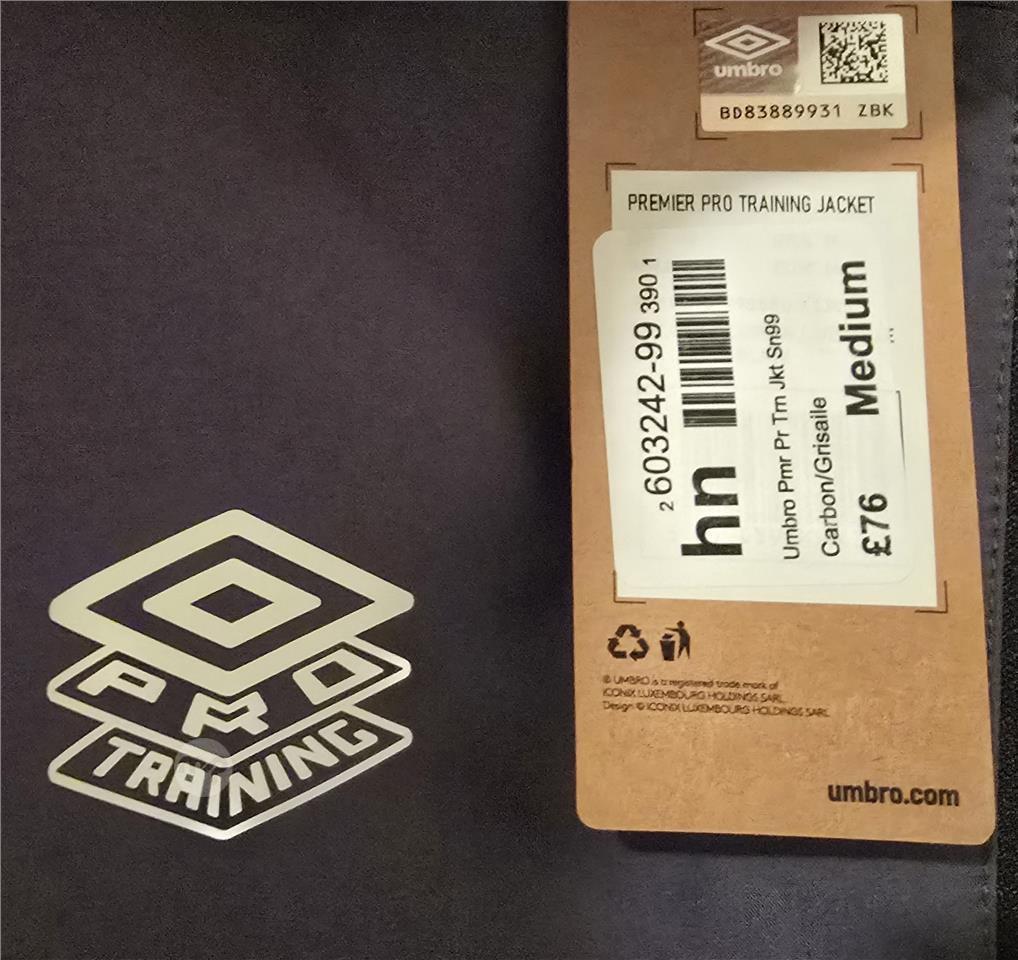 Umbro Lightweight Performance Training Jacket, size M, Carbon/Grey