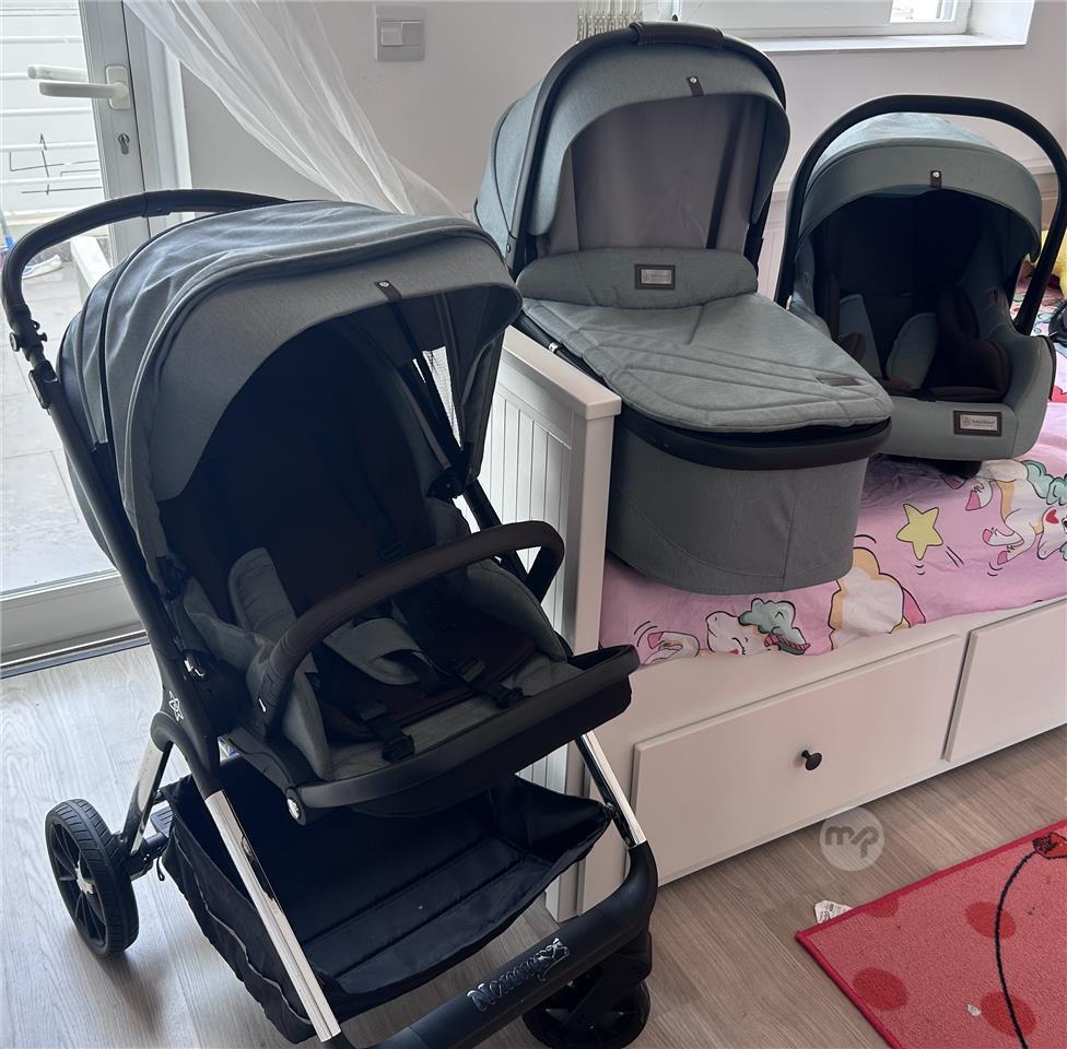 Bebe stars 3in1 travel system. Still in excellent condition. Pushchair and baby carrier barely used and baby cot still brand new never used. Comes with all extras including rain cover, baby net and foot muff. Delivery available.