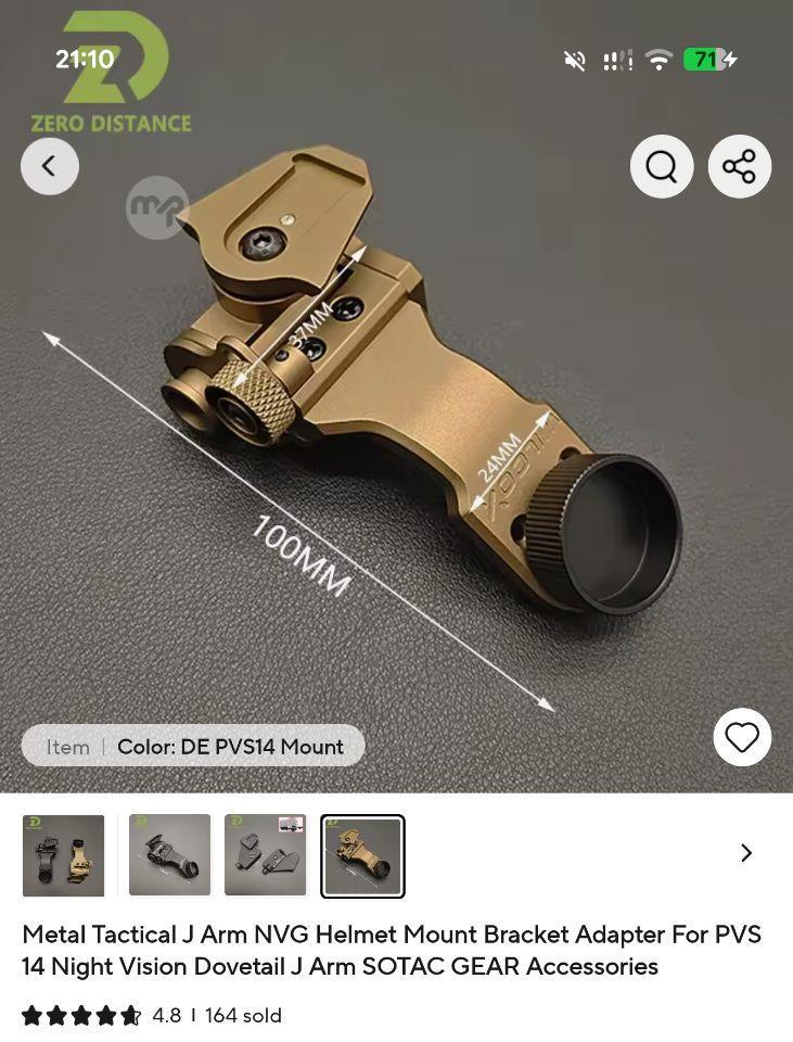Pvs14 Night Vision J Arm Mount New Tan Color Airsoft Or Military
