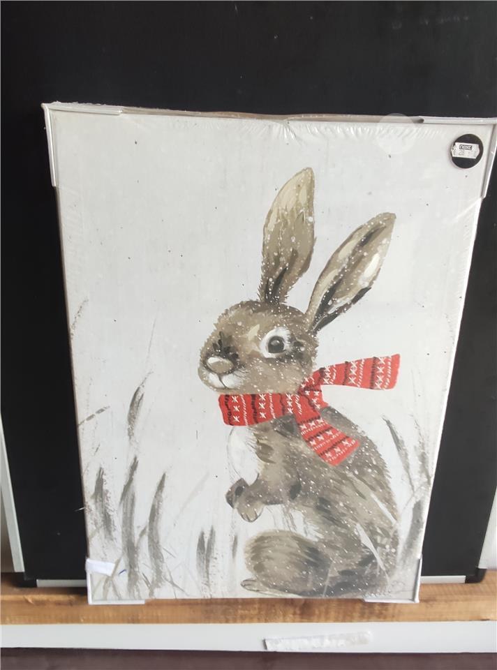 White frame with gray rabbit