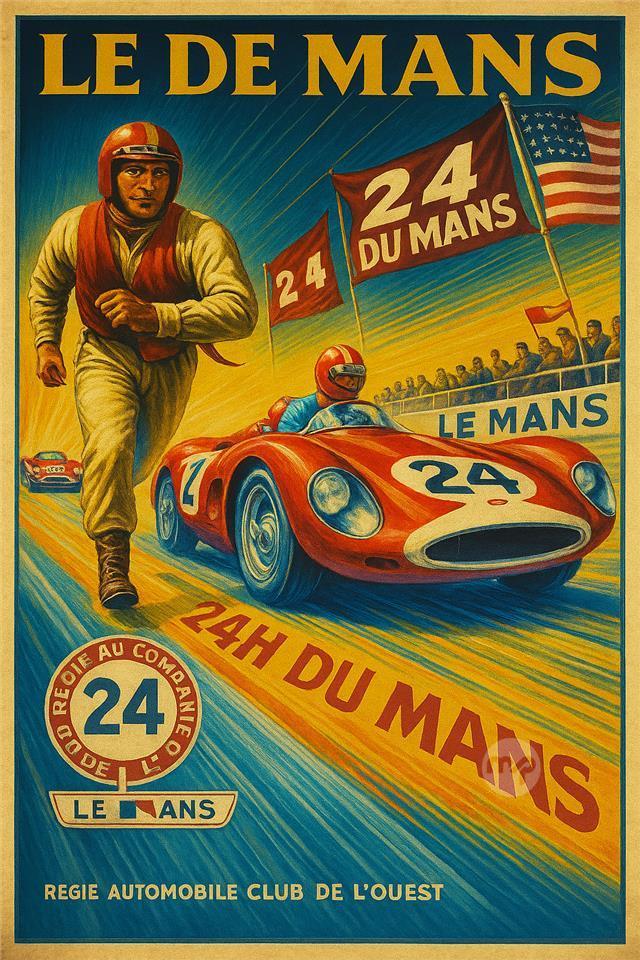 Decorative replica canvas poster inspired by the original Le Mans artwork. Modern reproduction.