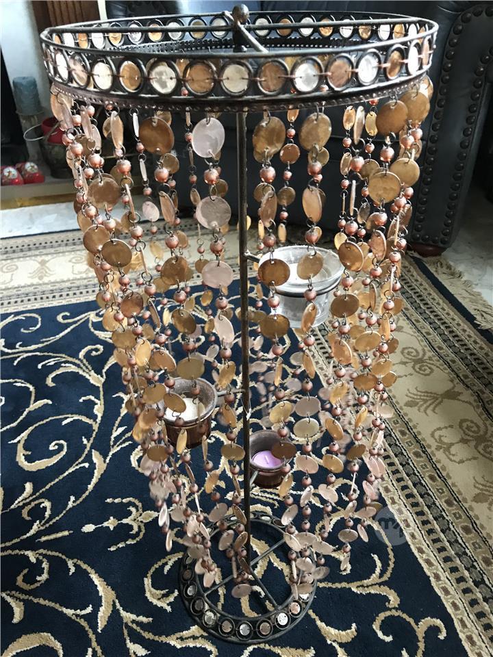 METAL CANDLE HOLDER STAND W/BEADS With candles,