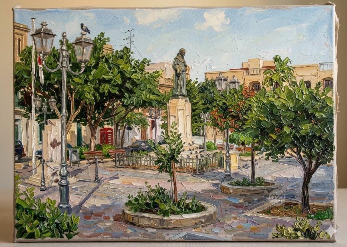 PJAZZA FRA DIEGO HAMRUN MALTA --- ORIGINAL HAND PAINTING OIL ON CANVAS 70X50