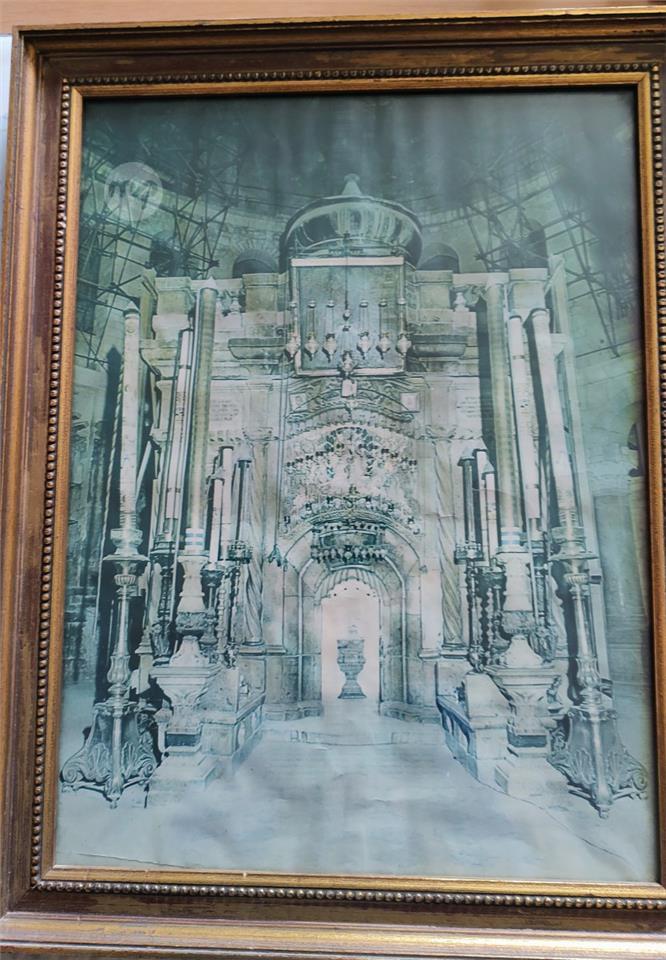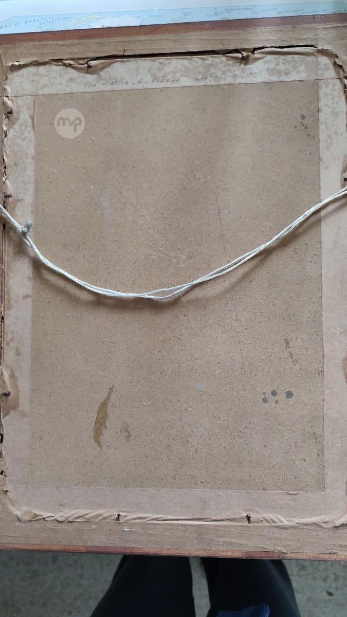 A very faded print of Santa Emma Church near the Austrian-Italian frontier. Frame is 46 cm x 36 cm made of light-weight wood covered with glass. The date on the back is 1990.