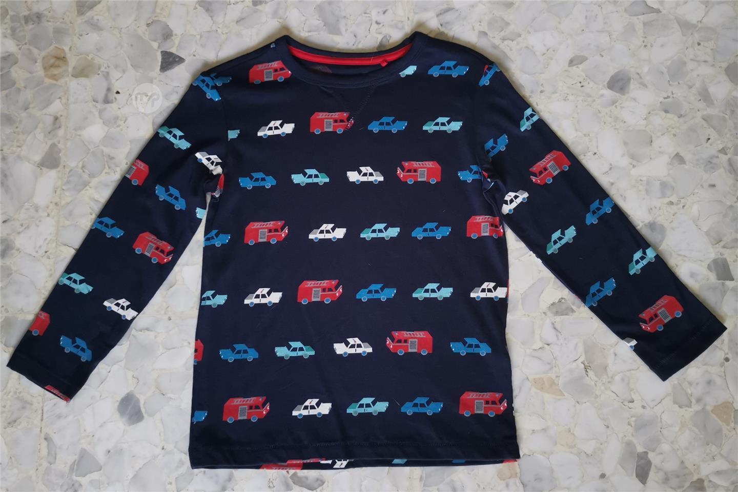 -Dark blue top with Fire engines and other vehicles all over.