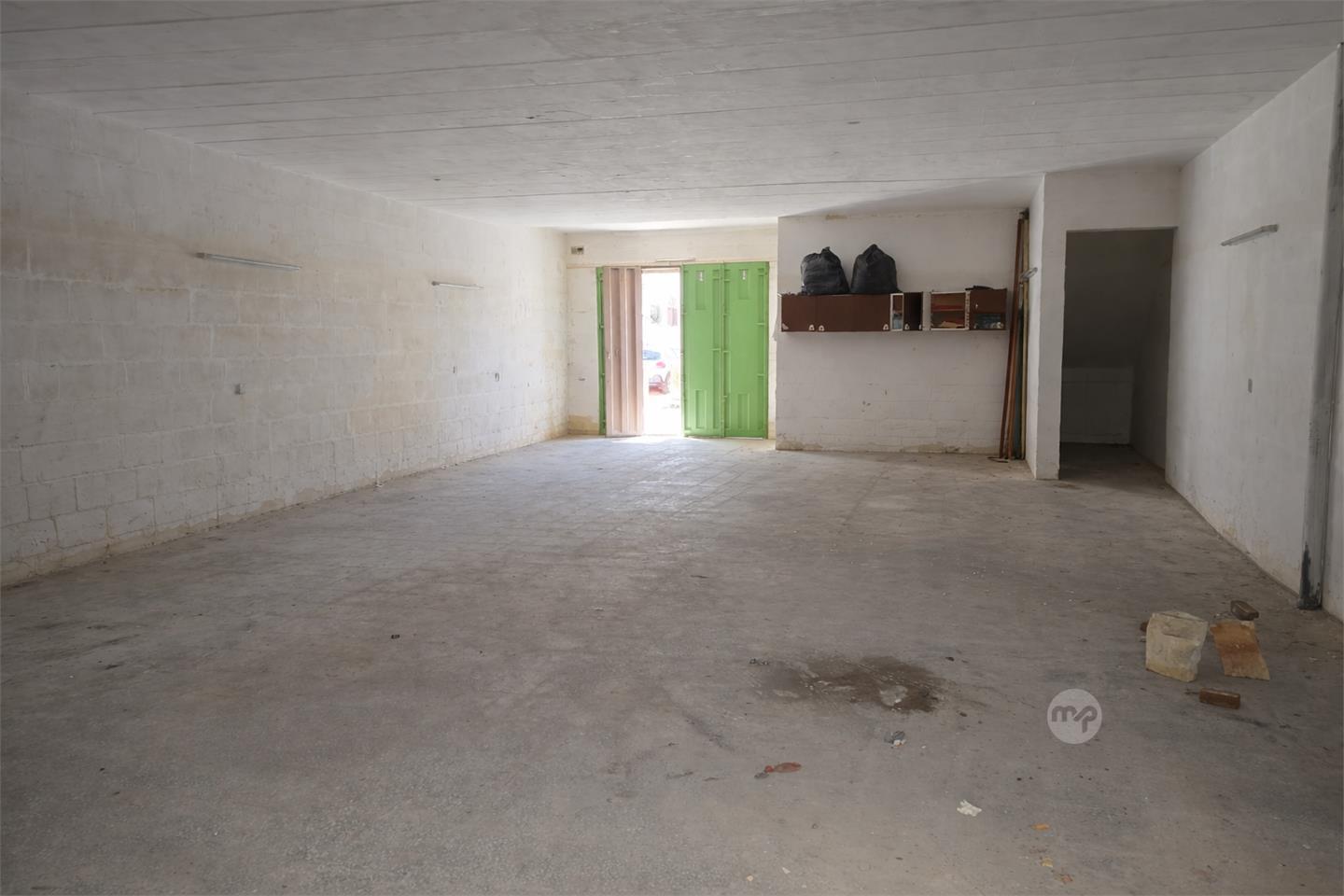 +/-100sqm street level garage/warehouse to rent in a quiet road in San Gwann with a back yard.3 metre ceilings. fits approx 10-12 cars. Eur 1400 monthly. 79560000.