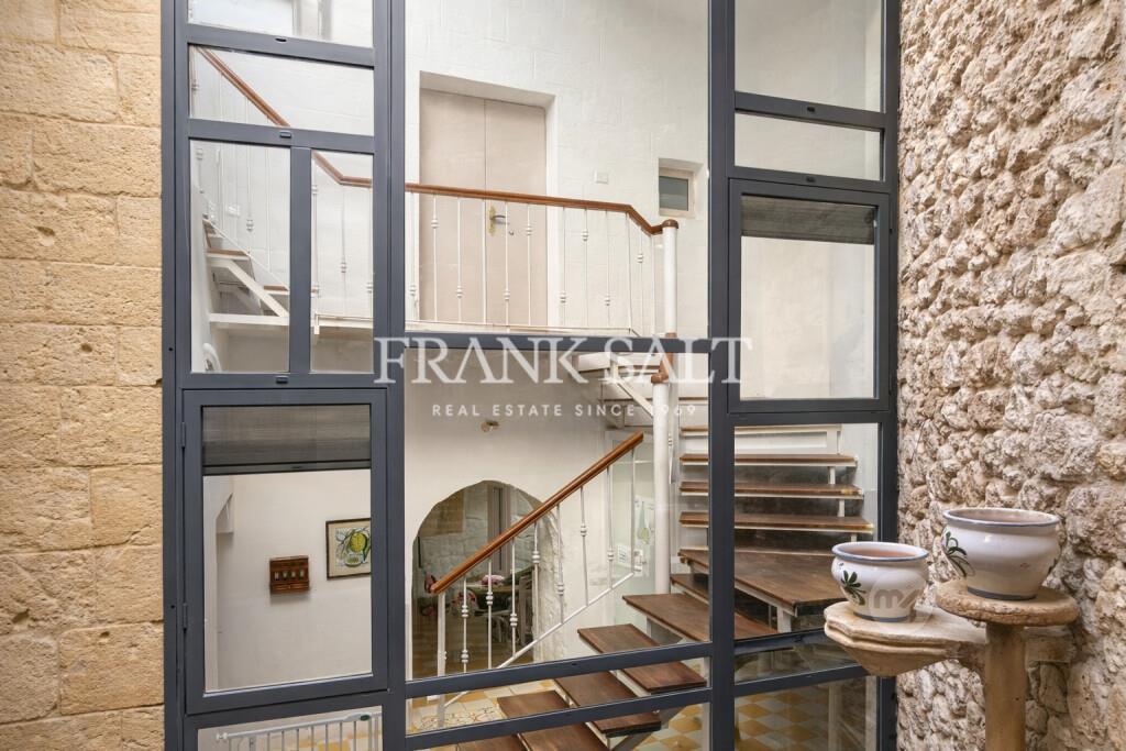 Tucked away in a peaceful alley in the historic core of Rabat, this beautifully restored 400-year-old HOUSE OF CARACTHER offers a rare opportunity to own an authentic Maltese residence within an Urban Conservation Area (UCA), just a short five-minute walk from the ancient city of Mdina.Spanning just over 300 sqm, the property comprises approximately 200 sqm of internal living space complemented by a spectacular 100 sqm roof terrace with full airspace—an exceptional outdoor setting ideal for dining, entertaining, and enjoying open skies above the village rooftops.The home features three spacious double bedrooms and five bathrooms, making it perfectly suited as a refined private residence, a high-end rental investment, or an exclusive boutique-style retreat. Two independent entrances further enhance flexibility, privacy, and potential for varied use.Throughout the home, a remarkable collection of original architectural features has been carefully preserved, including timber beams, stone arches, niches, traditional Maltese tiles, high ceilings, original apertures, a historic well, birthing rooms, and a fireplace—each contributing to the property’s authentic character and timeless appeal.Natural light plays a central role in the design. A striking full-height glazed elevation within the central courtyard draws daylight deep into the interior, complemented by two skylights and preserved apertures that illuminate the spaces while maintaining the home’s historic integrity.Fully modernised for contemporary living, the property is equipped with air-conditioning throughout and insect screens, ensuring year-round comfort without compromising its traditional charm. A brand-new designer kitchen by DARI seamlessly blends modern functionality with the home’s historic character.The property is being sold partly furnished, offering immediate enjoyment while still allowing the opportunity to personalise this exceptional residence.