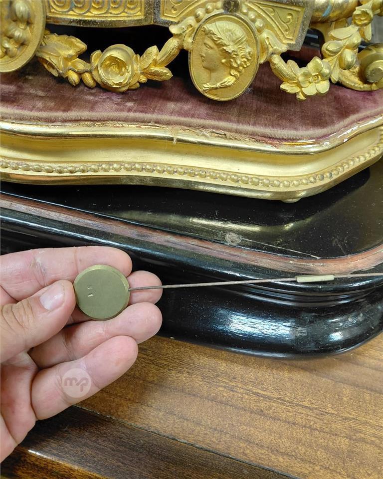 A Large Genuine Antique French gilt, large Mantle clock under its original glass dome