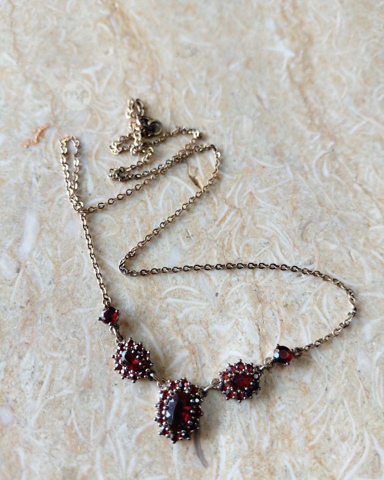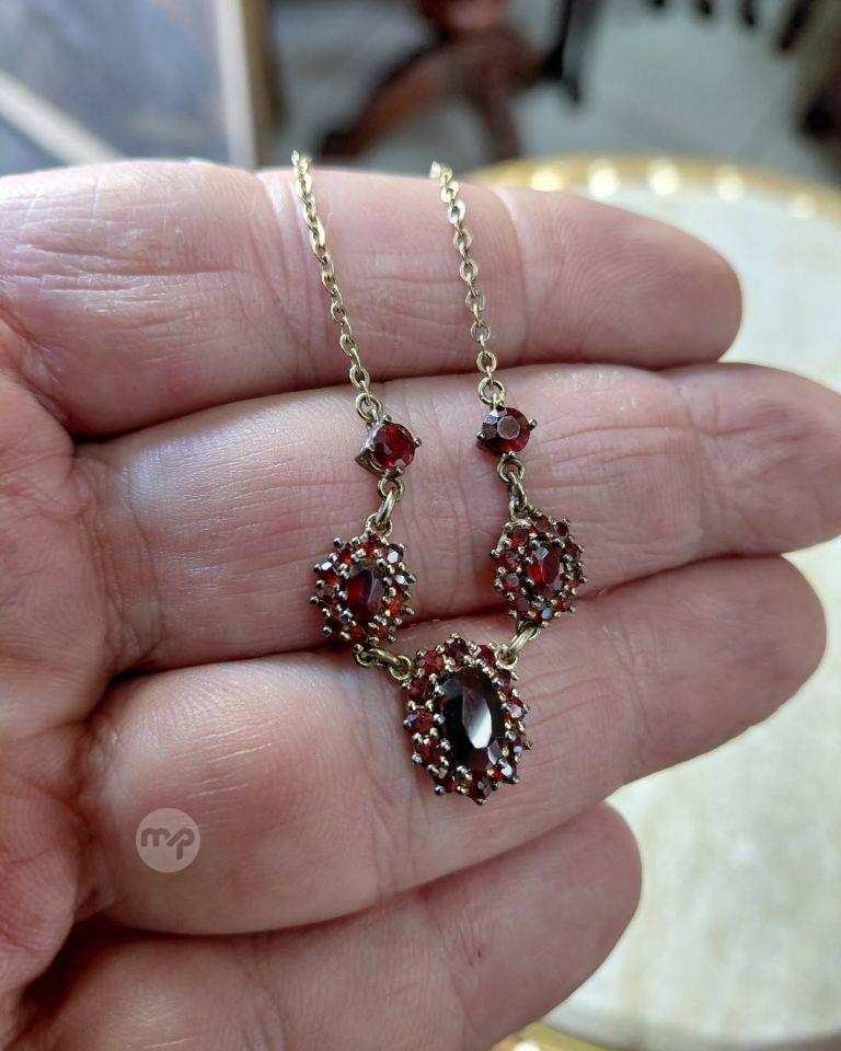 Vintage classic design 8 crt GOLD necklace Adorned with garnet floral motifs