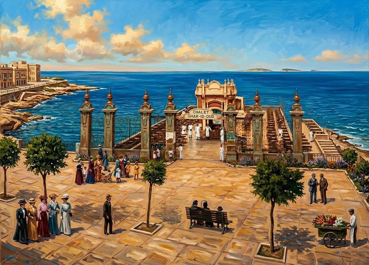 GHAR ID-DUD SLIEMA 1936 MALTA ---- ORIGINAL HAND PAINTING OIL ON CANVAS 70X50