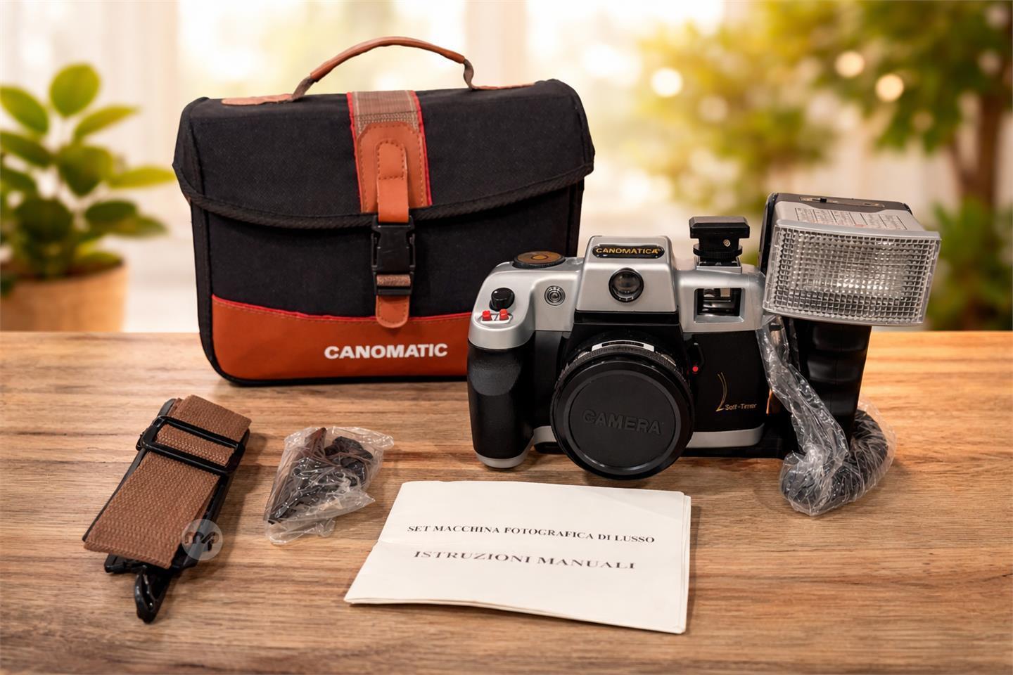 Canomatic Vintage 35mm Camera Kit with Flash – Fixed 50mm f/6.3 Lens – Complete Set with Bag
