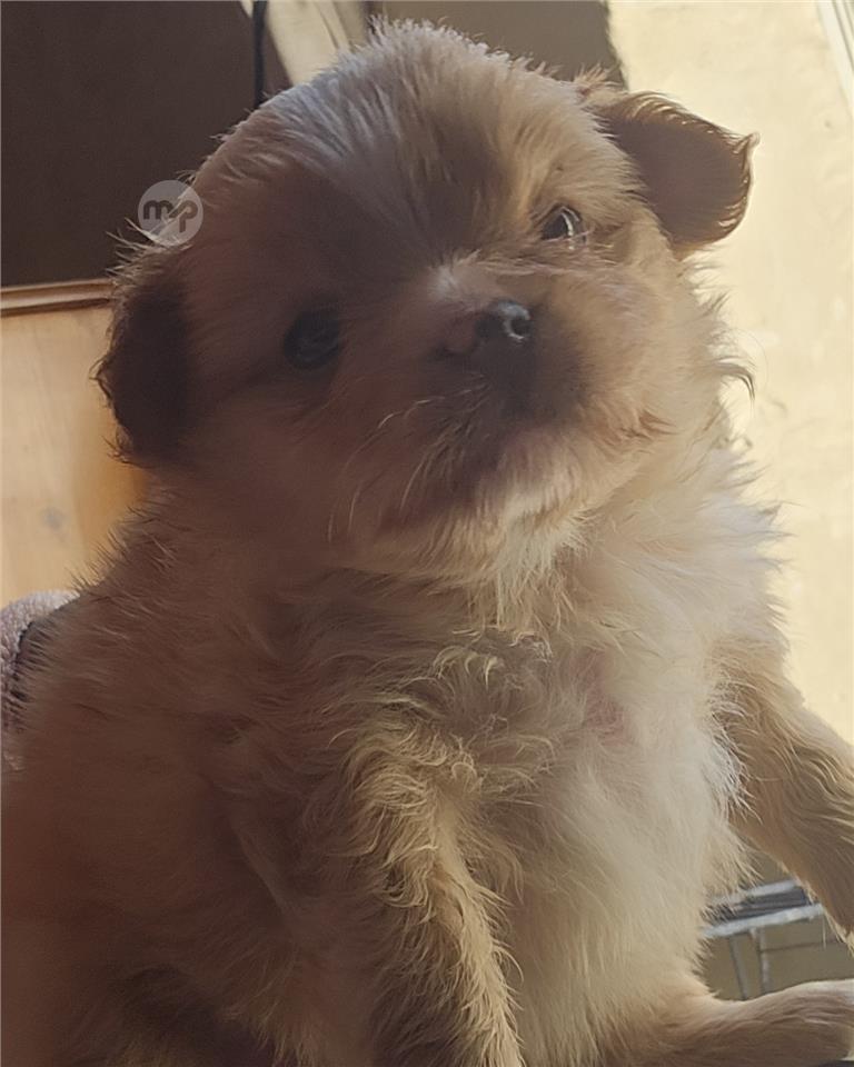 Pomeranian male in the photo he looks big but he isss really small he is light brown with some white . He is 2 months old and dewormed. If you want to buy just come to see him but sure youre not coming for nothing .