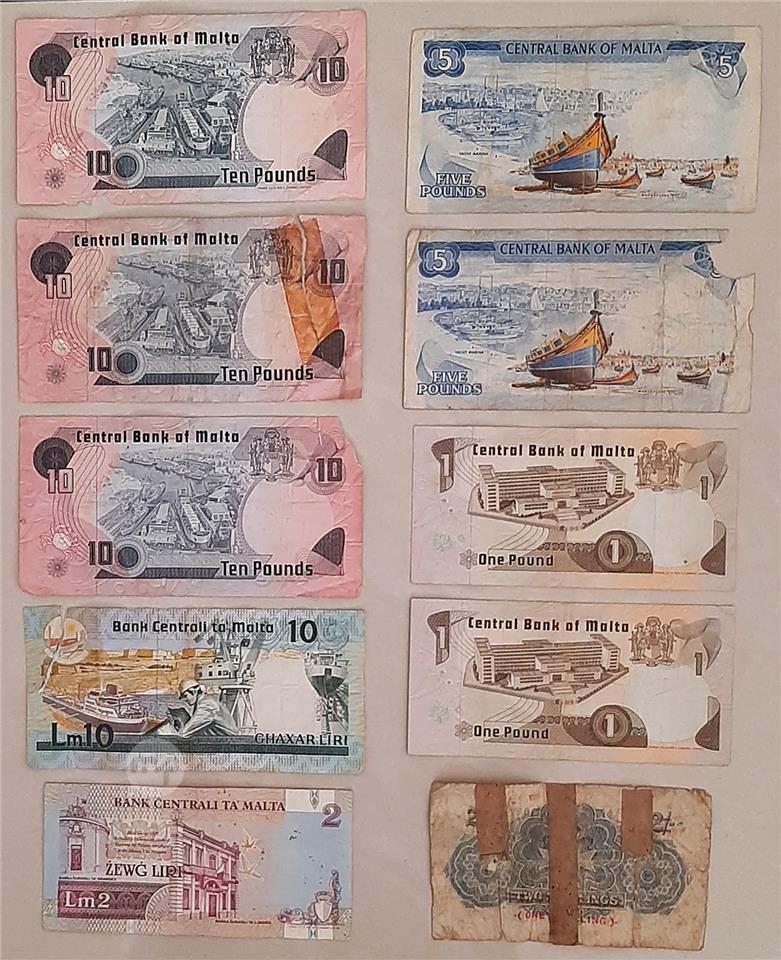 10 MALTA BANKNOTES - 1/-, LM1, LM2, LM5, LM10