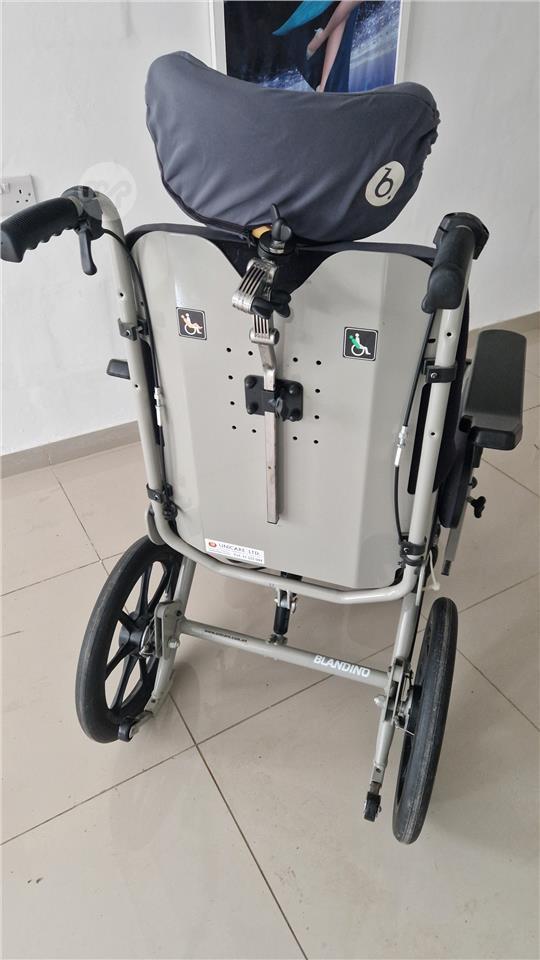Blandino wheelchair in good condition with tilting option that makes it comfortable for patients. Equipped with headrests.