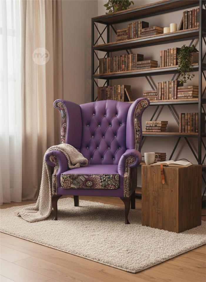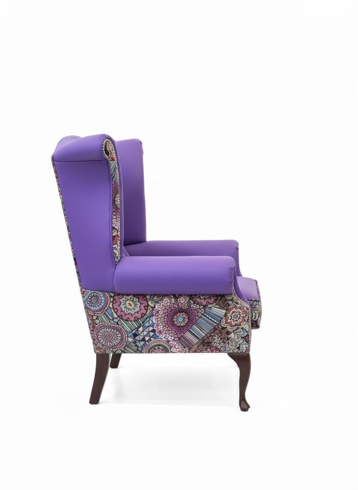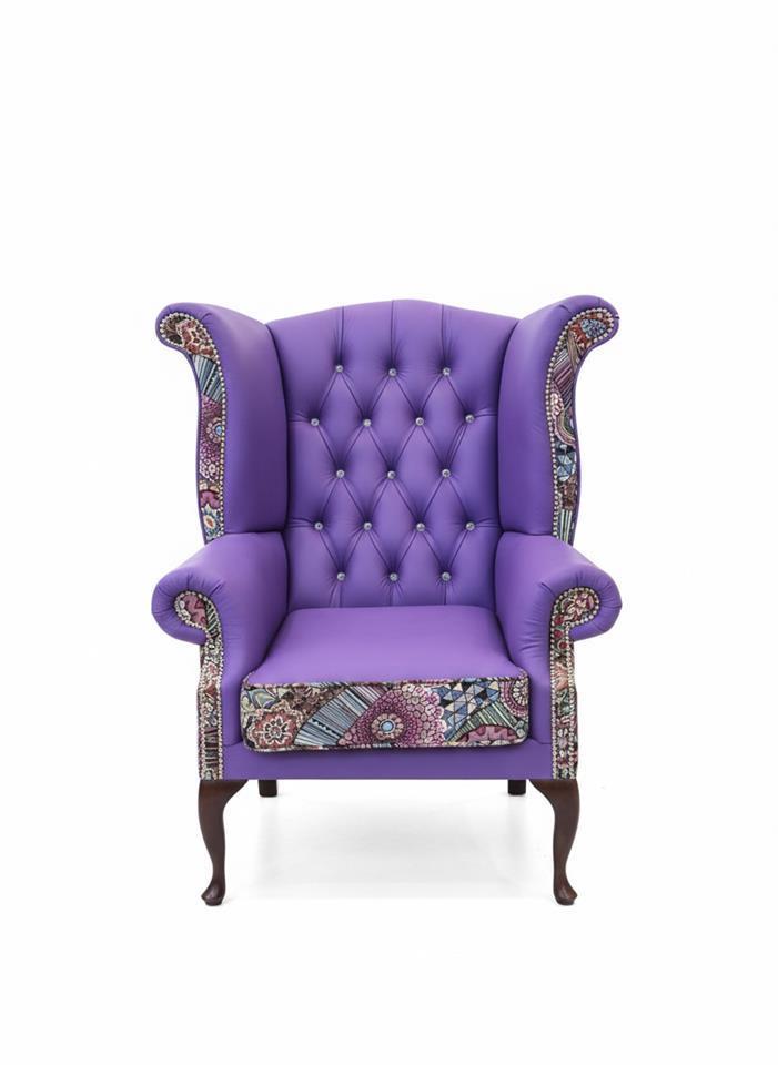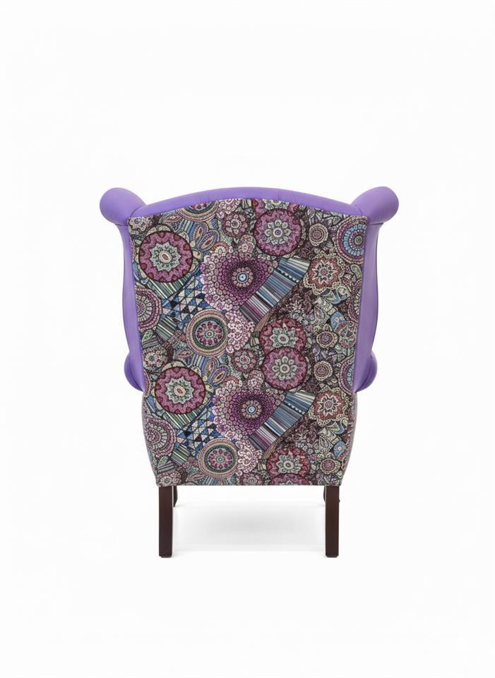 Velchester Purple Wingback Armchair – Leather & Patchwork