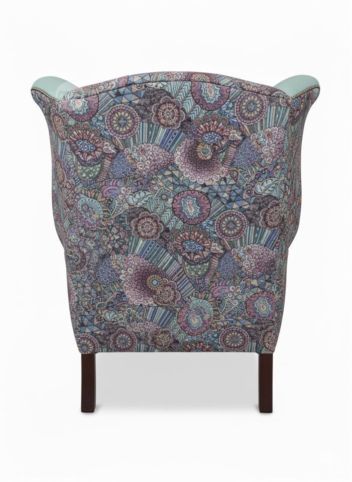 With its deep button-tufted back, graceful winged sides, and hand-finished stud detailing, this armchair is designed for both comfort and character — perfect as a statement piece or as part of a coordinated interior.