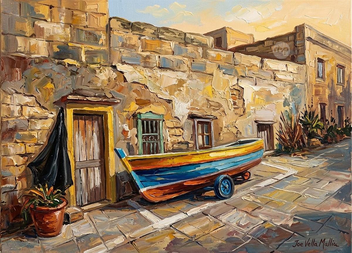 THE FISHERMAN'S BOAT MALTA ---- ORIGINAL HAND PAINTING OIL ON CANVAS 70X50