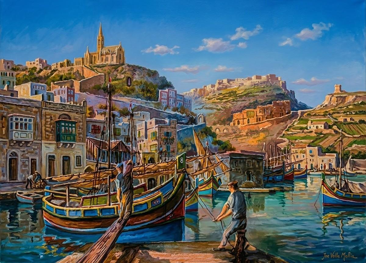 BUSY MGARR GOZO---- ORIGINAL HAND PAINTING OIL ON CANVAS 70X50