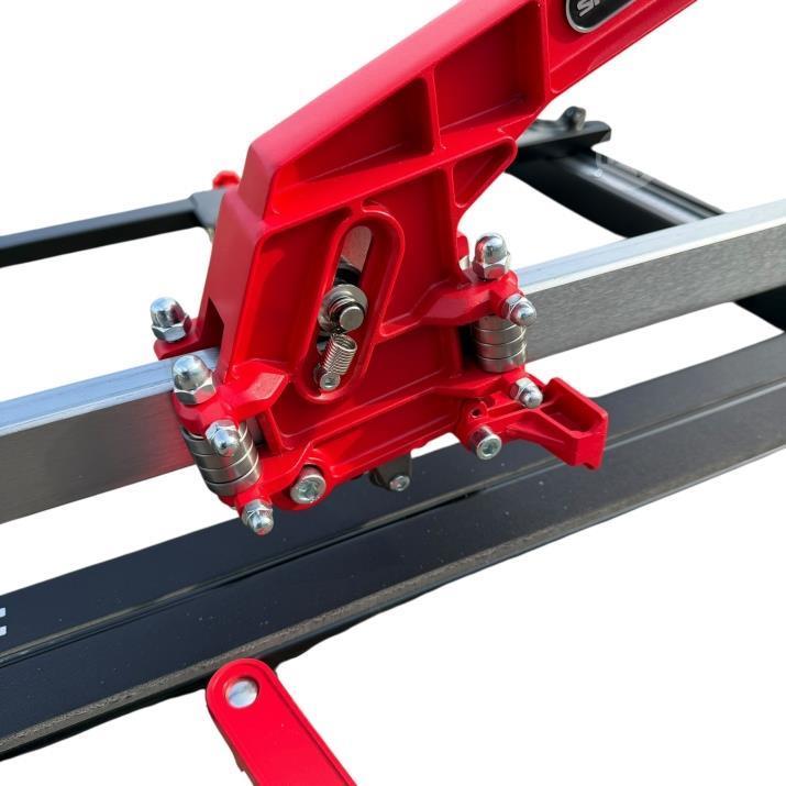 They are especially convenient for working with large-sized tiles (the length of the cut is 1.24 m). You can immediately cut porcelain stoneware with dimensions of 1x1m and 1.2x1.2m or 10-12 small tiles with one cut per size. Therefore, this tile cutter can rightfully be called a professional high-speed cutter, which will save a lot of time for tile masters.