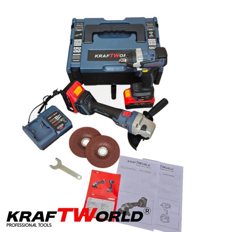 Impact Wrench and Angle Grinder Cordless Set 125mm Kraftworld