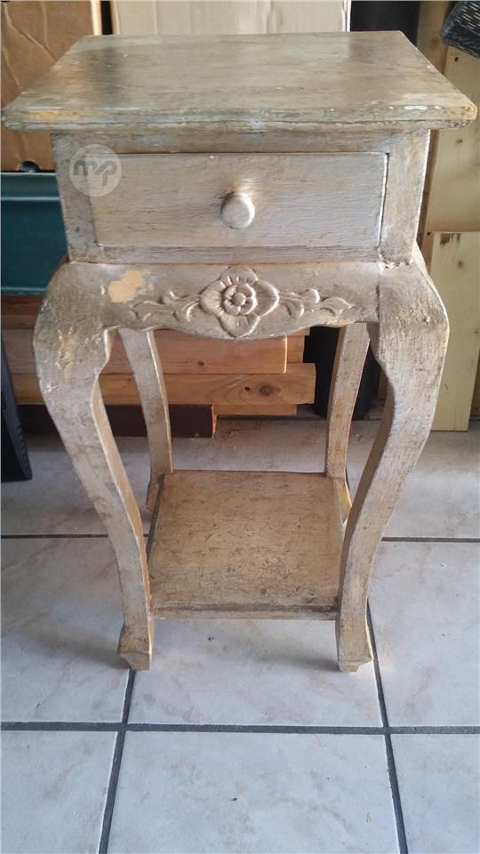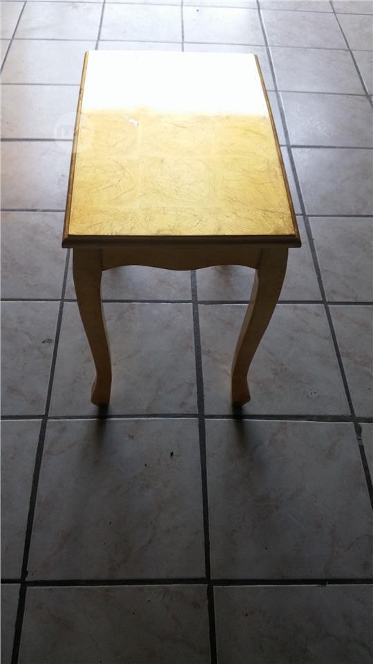 Hand-painted side table features a unique silver and gold color,