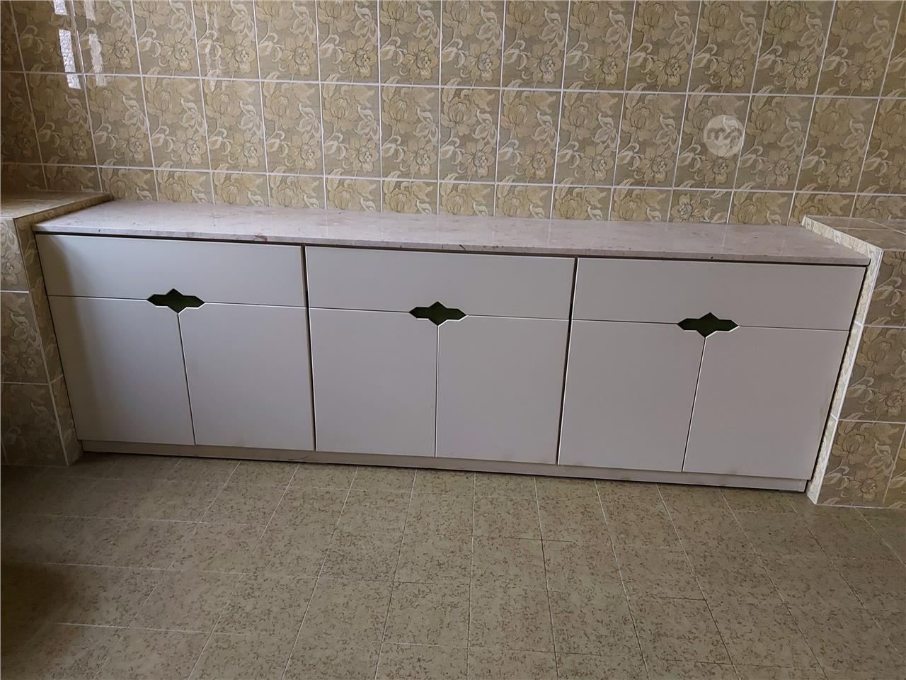 Cupboard with detachable marble top, 270cm long.