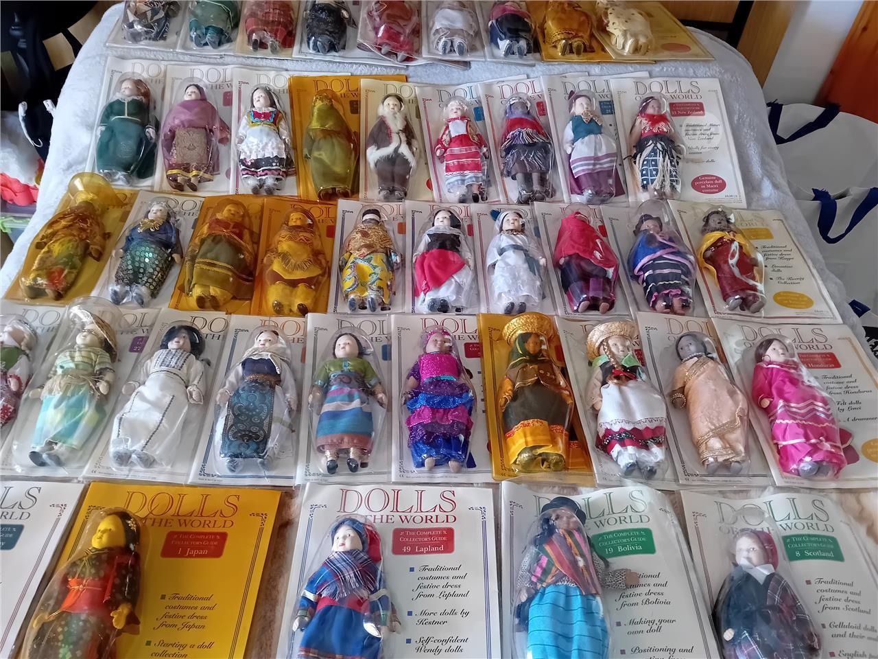 A lovely collection of dolls in prime condition. Dolls wearing costumes of traditional dress of different countries around the world. These are packed in the origianl packing, and thus being sold as almost brand new.