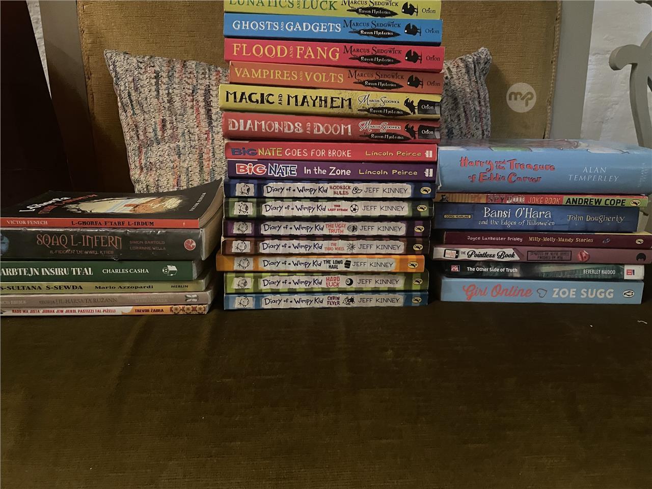A selection of reading books for children and English and Maltese literature textbooks. Selling individual books at €2 each.