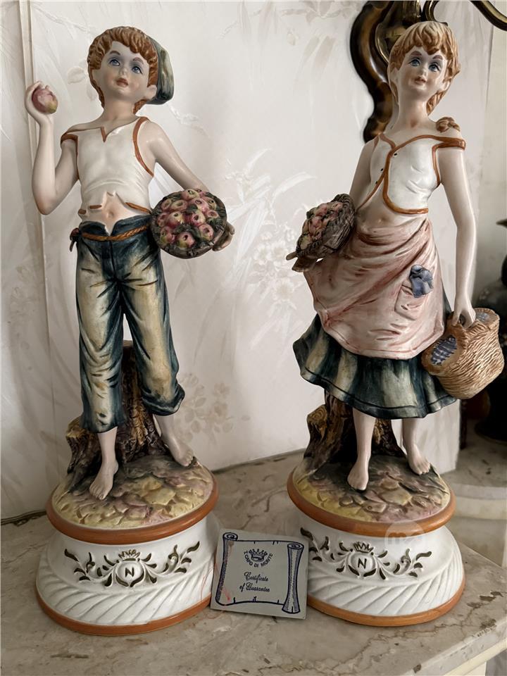 Capodimonte style porcelain figurine pair – crowned N mark. Made in Italy .