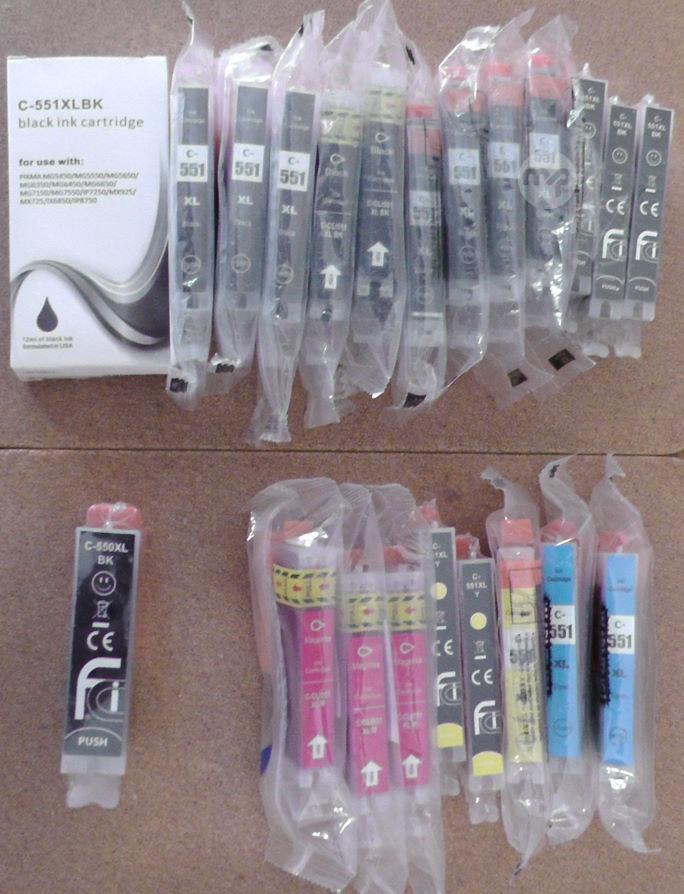 In total quantity x22 ink cartridges. Black(551) x13 , Magenta x3 , Yellow x3 , Cyan x2 , Black(550XL) x1.