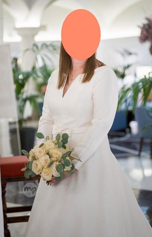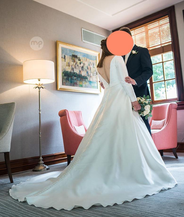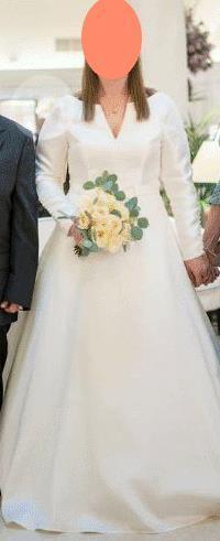 Highly elegant ivory size 18 wedding dress in silk mikado.
