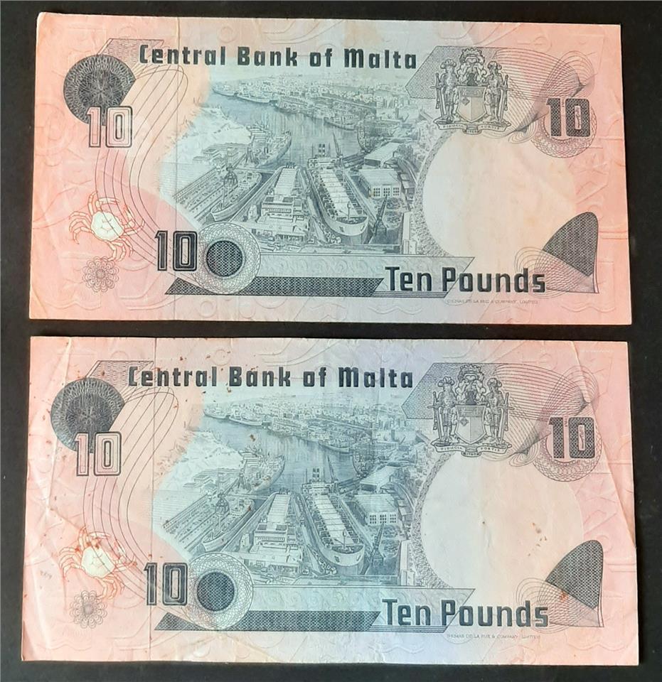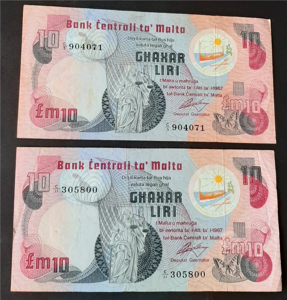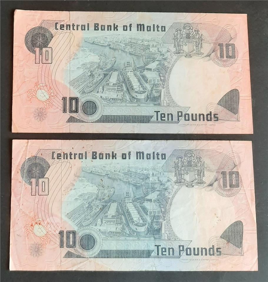 2 MALTA GHAXAR LIRI (LM10) BANKNOTE signed LINO SPITERI