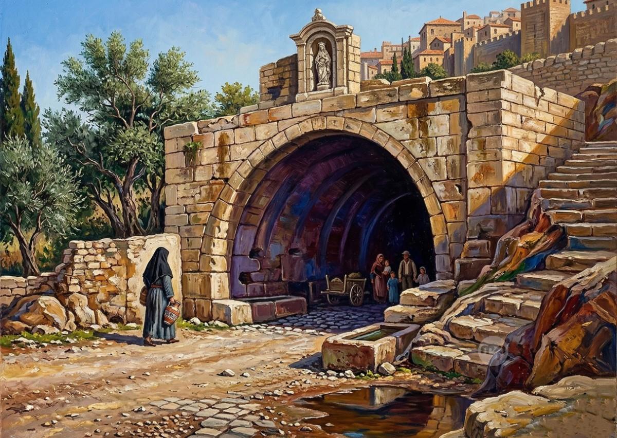 FONTANA WASH HOUSE GOZO ---- ORIGINAL HAND PAINTING OIL ON CANVAS 70X50