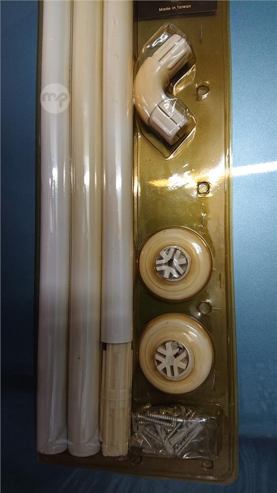 Complete set to fit shower curtain to wall and/or ceiling.