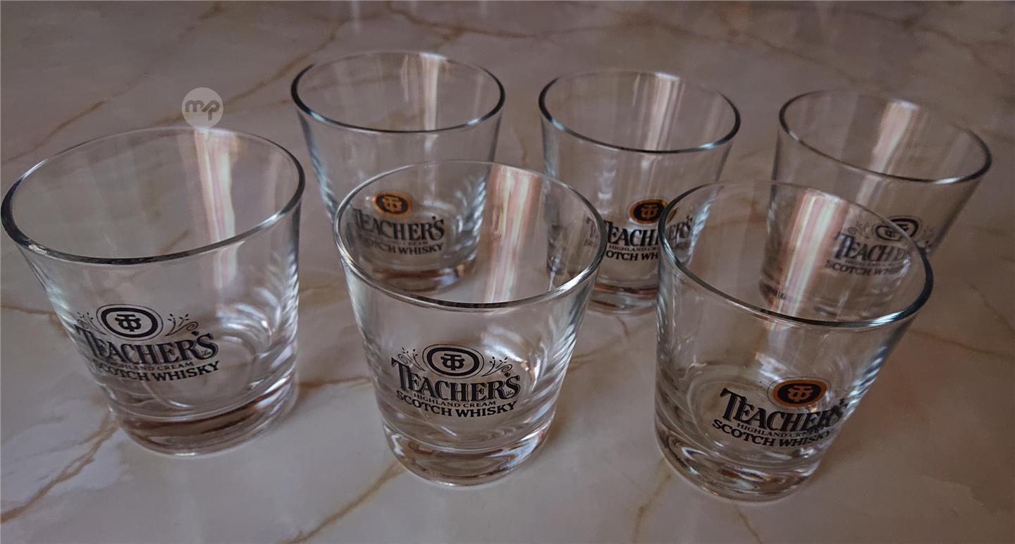 Whisky Glasses with black 'Teacher's' Logo (set of 6)
