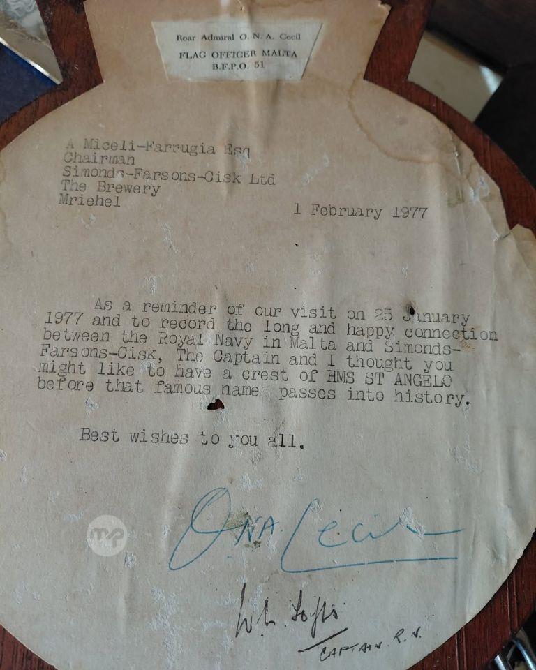 An HMS FORT St Angelo Hand painted gesso plaque on wooden back