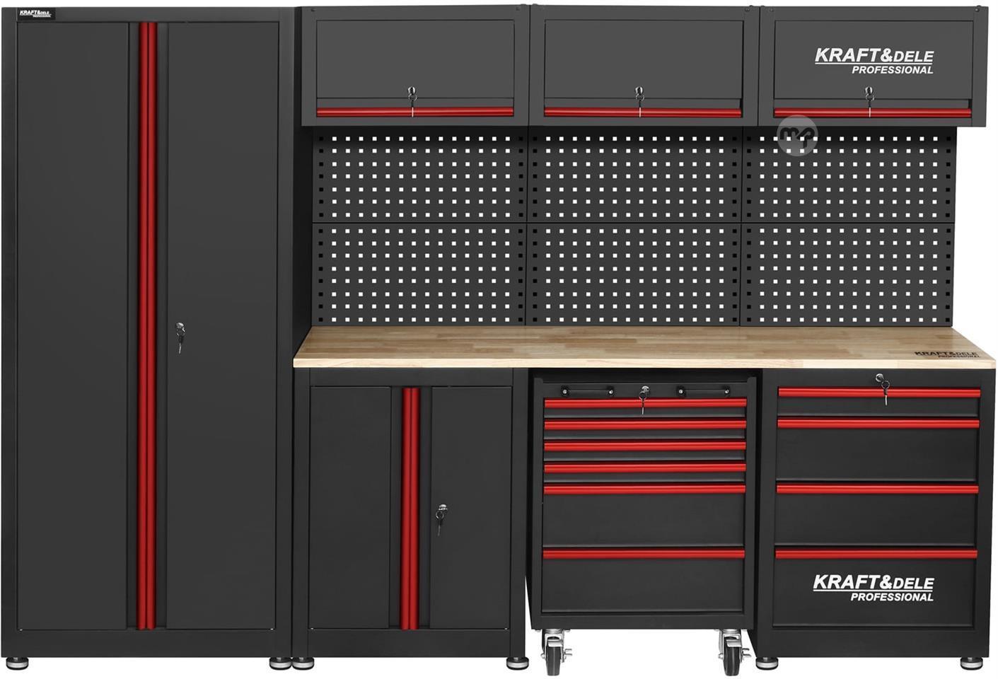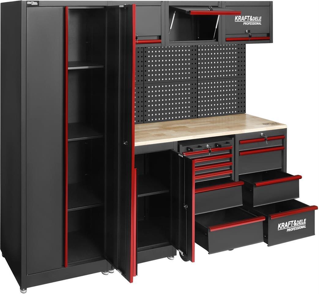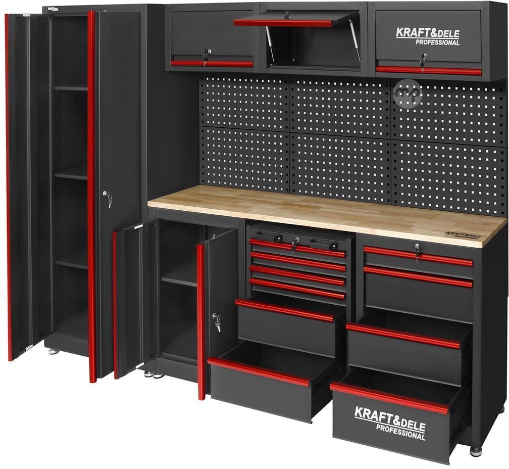 The complete KRAFT&DELE KD5860 workshop furniture set was created with professionals and discerning DIY enthusiasts in mind. This extensive and functional workstation offers ample space for tools, accessories, and parts, ensuring excellent organization and comfort during daily work.