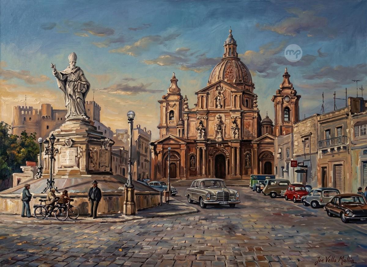 PJAZZA SIGGIEWI MALTA --- ORIGINAL HAND PAINTING OIL ON CANVAS 70X50
