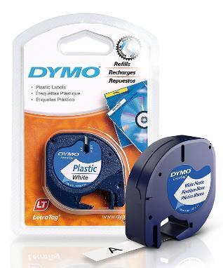 Dymo LetraTag labelling tape. Colourful, tear-resistant and easy-to-use, these plastic labels will brighten up your productive Dymo day.Width 12mm, length 4m.