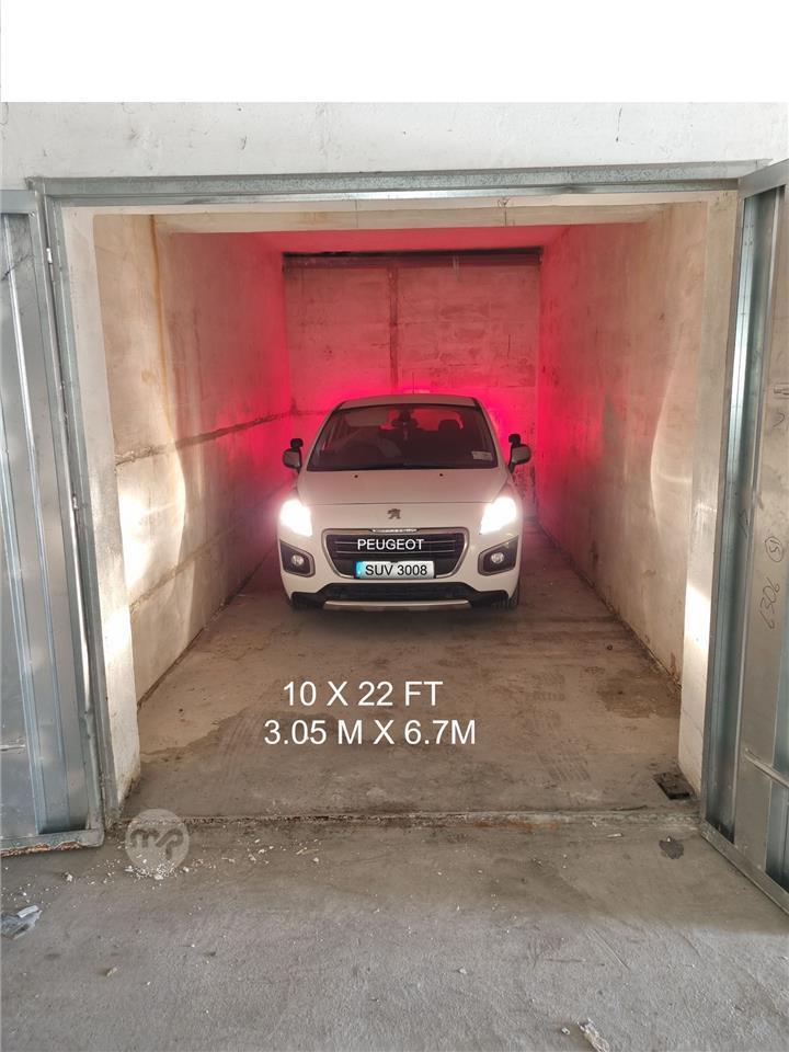 One car semi-basement garage in Triq Dawret il Qawra, Qawra, Garage: 6.7 x 3.05 metres; 22 x 10 feet. €1300 per year plus €150 deposit, call 7968 3759.