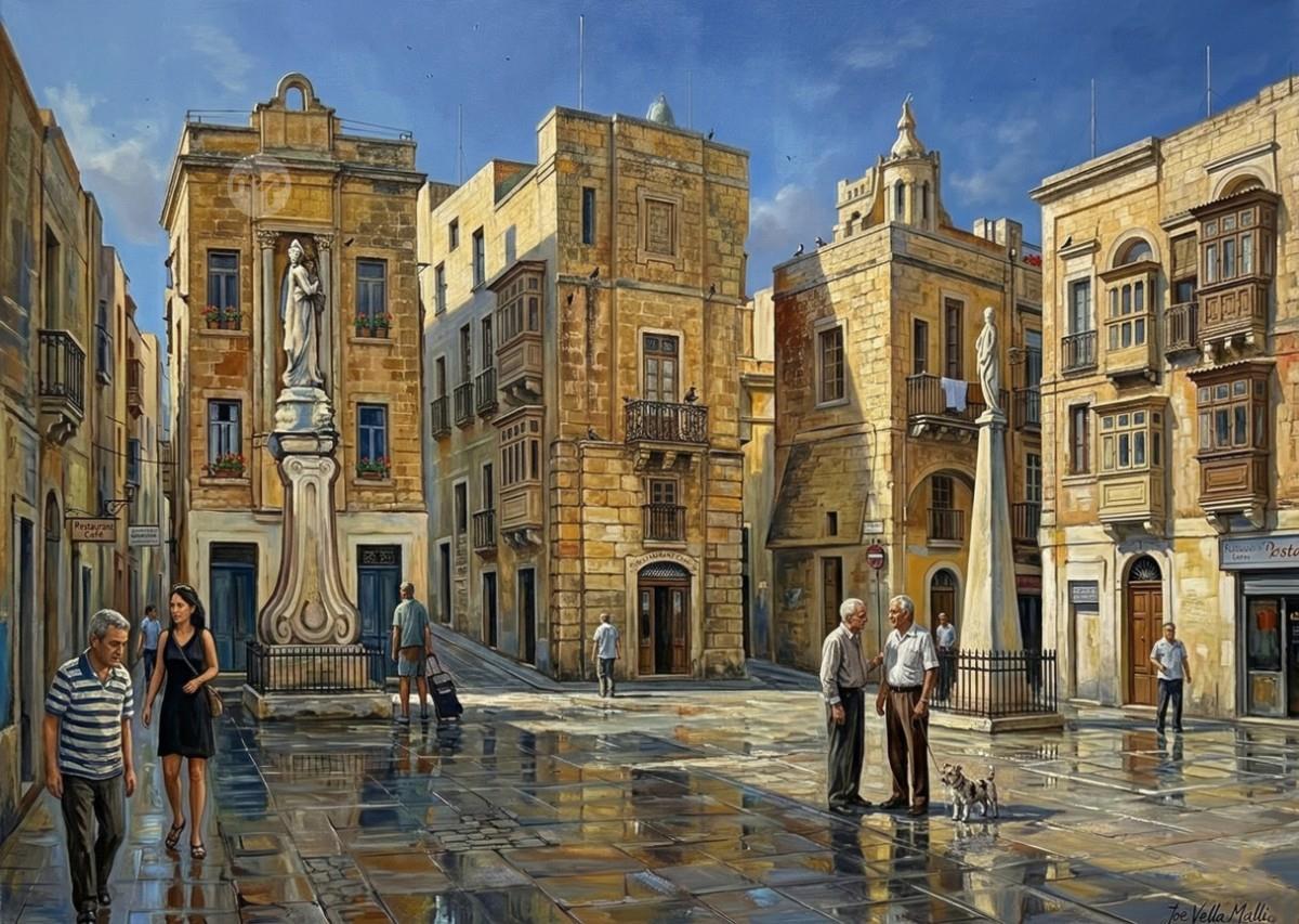 IL-PJAZZA TAL-BIRGU MALTA --- ORIGINAL HAND PAINTING OIL ON CANVAS 70X50