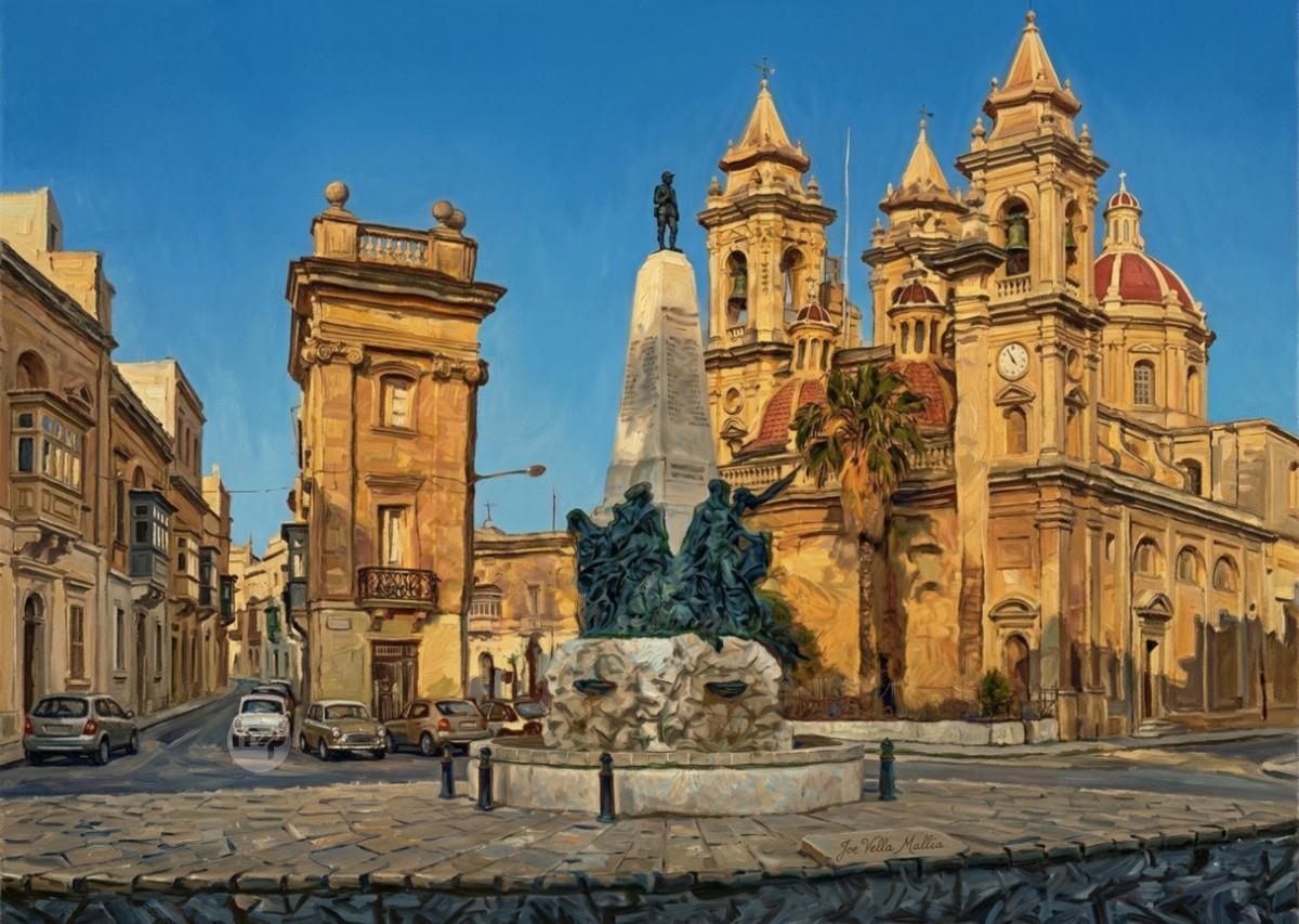 ZABBAR WAR MONUMENT MALTA -- ORIGINAL HAND PAINTING OIL ON CANVAS 70X50