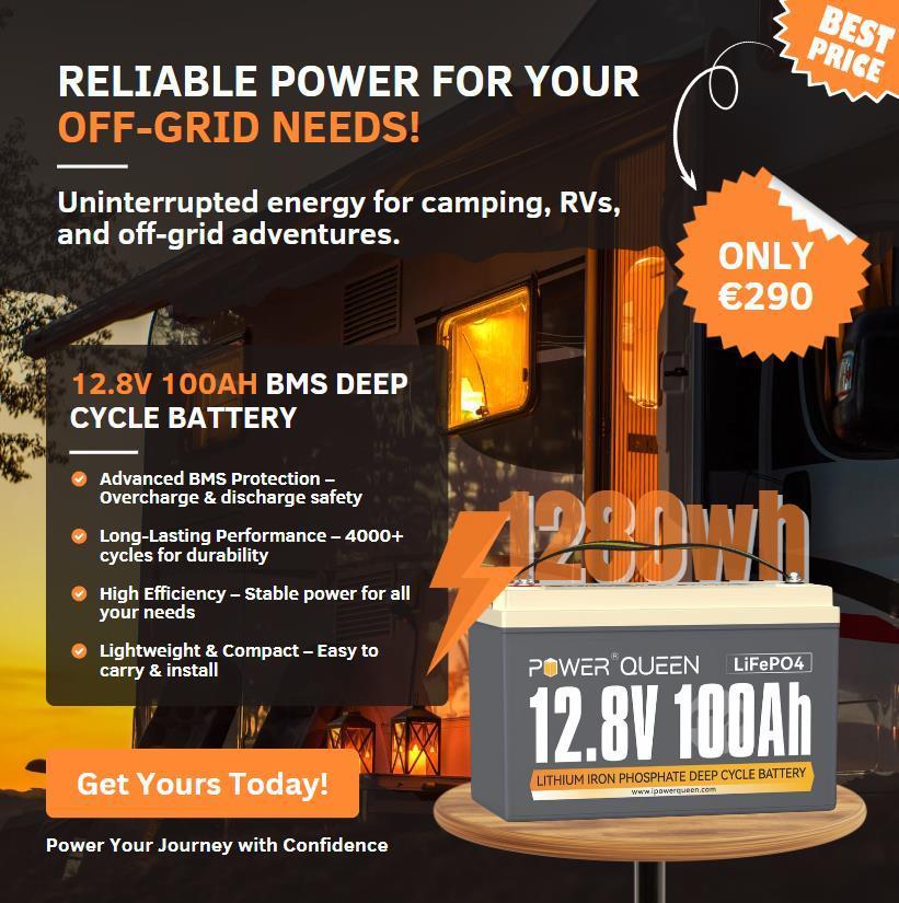 PowerQueen 12.8V 100Ah Lithium BMS Deep Cycle Battery