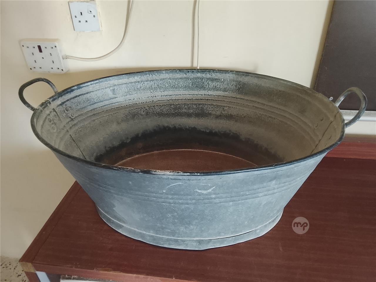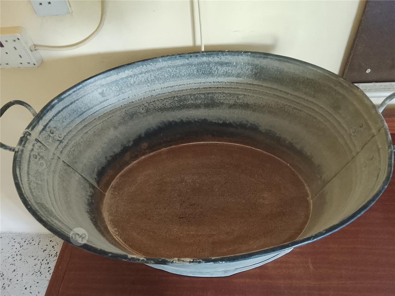 Vintage metal wash basins – 2 large and 1 smaller, all solid with a rustic aged look and natural wear.