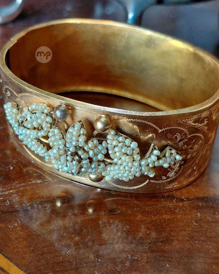 Decorated with flowers and foliage Engravings and adorned with strings seed pearls jewellery