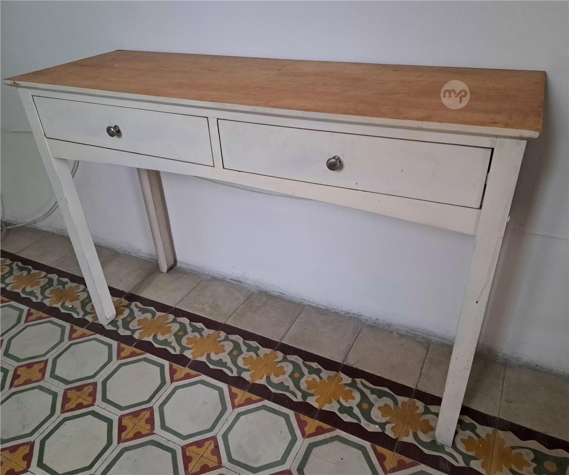 Hall console table with 2 drawers, measuring 112cms x 38cms x 77cms.