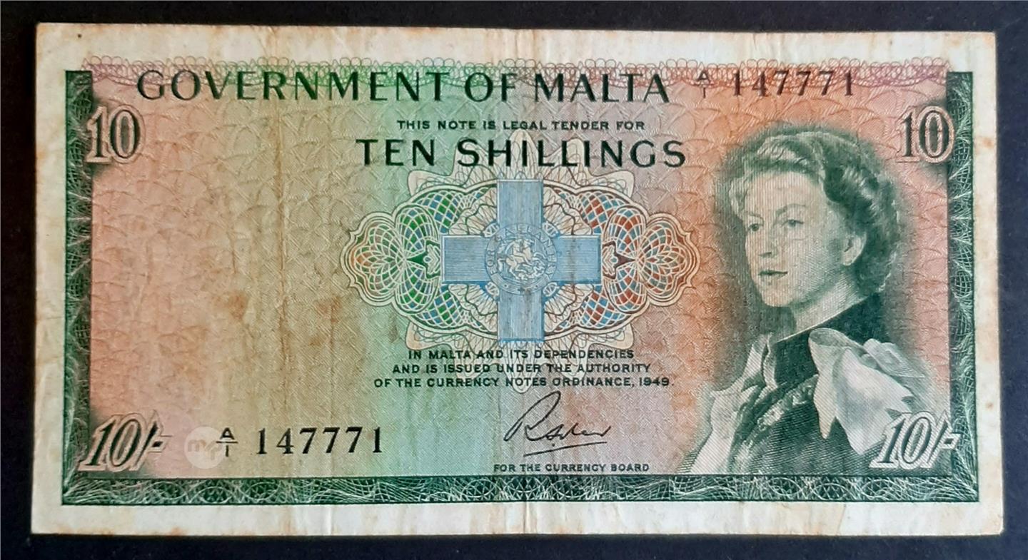 MALTA - GOVERNMENT OF MALTA ELIZABETH II TEN SHILLINGS BANKNOTE signed SOLER (SCARCE)